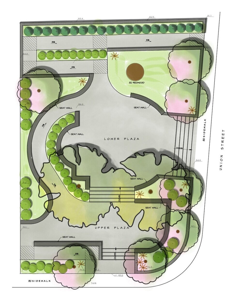 As part of a report commissioned by City Council to address current conditions and potential improvement of a public park in downtown Nevada City, KKLA worked with the Calanan Park Committee to create this design which includes replacing dense, evergreen trees and overgrown shrubs with flowering shrubs and deciduous canopy trees for lighter, dappled shade; accessible pathways connecting all areas to each other and to the adjacent sidewalks; and small gathering spaces.